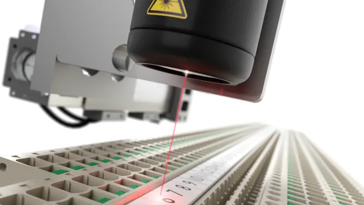 Marking terminal blocks is usually a time-consuming process with a high risk of error. For this reason, the design of the SNAP IN terminal blocs in the S-Series has been optimised for fully automatic laser marking, bringing a time saving of up to 90%. In combination with the Weidmüller Configurator (WMC), the Klippon® Automated RailLaser achieves the highest possible marking quality and lowest possible error rate.