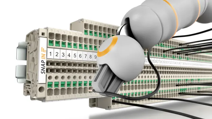 With automated production processes, errors can be avoided, workflows accelerated and costs reduced. This works best with solutions based on each other and thought out down to the last detail. The contours of the new SNAP IN S-Series terminal blocks have been designed to be easily gripped and mounted by industrial robots. This means that there are already no obstacles to automated assembly.